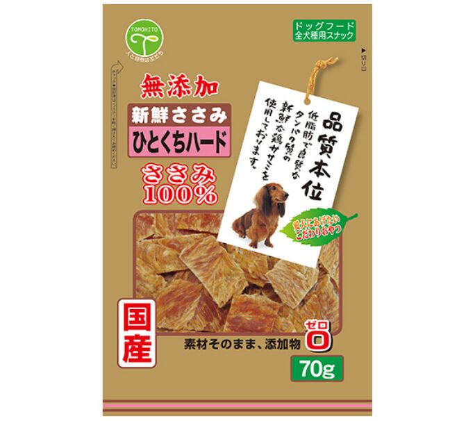 株式会社友人(ともひと)の「新鮮ささみ 無添加」シリーズから展開している、ひとくちサイズのハードタイプです。