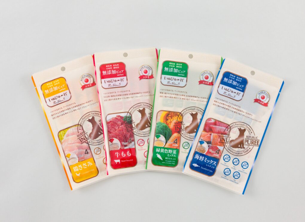 RIVERD REPUBLICから展開している、「いぬぴゅ〜れ 無添加ピュア PureValue5」シリーズの4種類の味が楽しめるトライアルセットです。