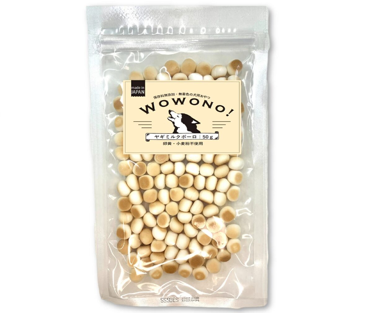 Wowono!の犬用おやつシリーズから展開している、ヤギミルクを使用したボーロです。